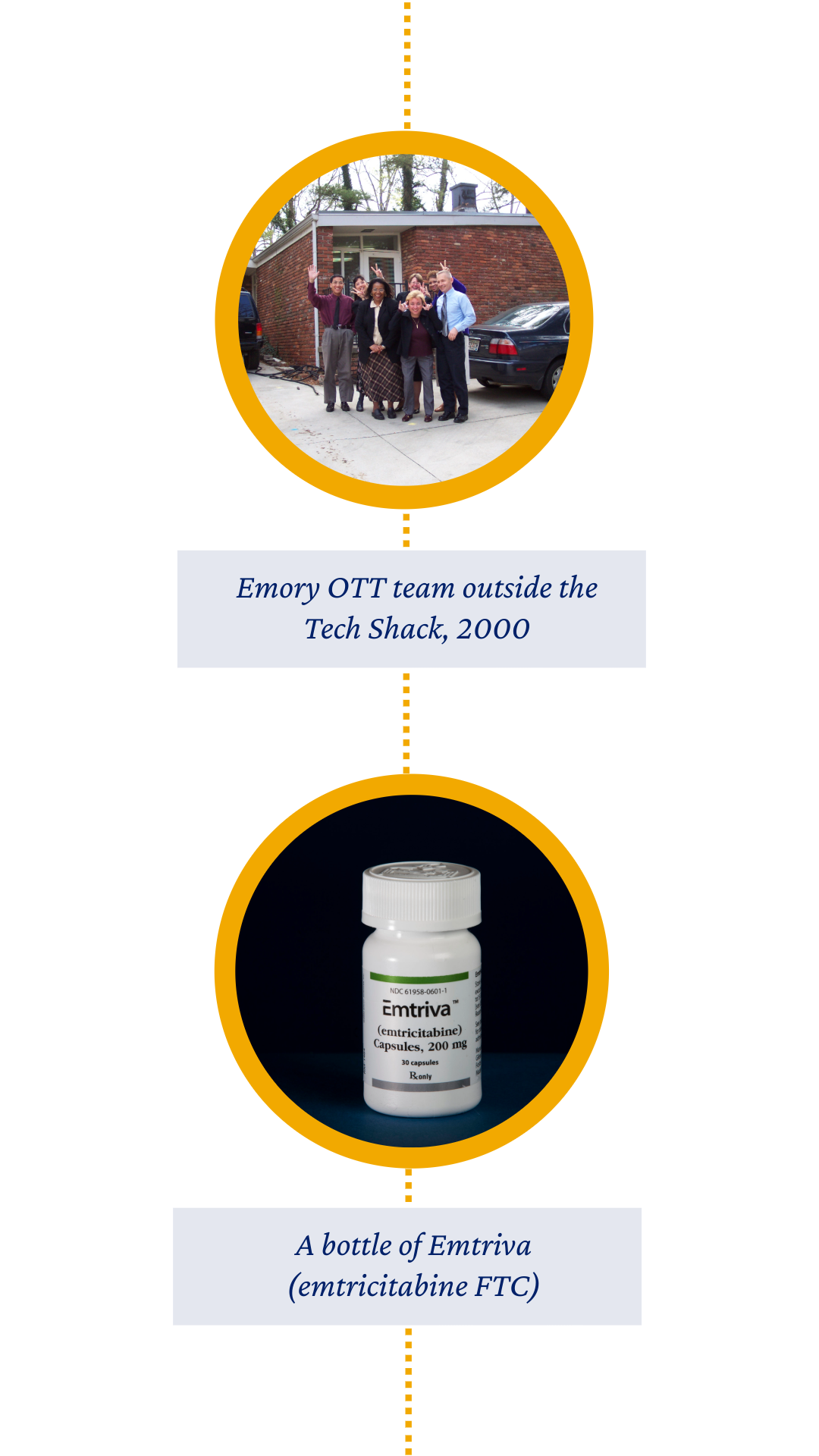 But the most notable event in our second decade came in 2005: Emory sold its future royalties for emtricitabine (FTC) for $540 million — the largest monetization in U.S. university history at the time — securing Emory’s place as a national leader in innovation.