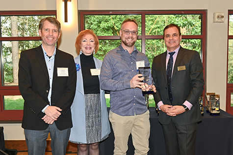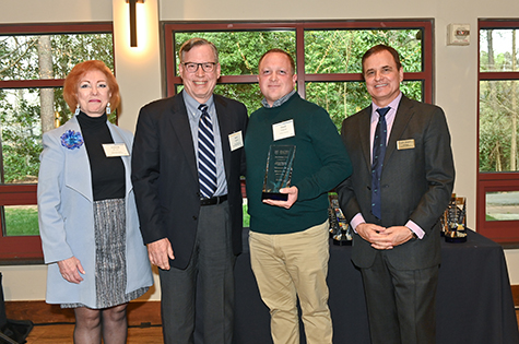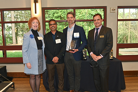 Deborah Bruner, SVP Research; Mark Coburn, case manager; Daryll Vanover accepting for Philip Santangelo, inventor; Todd Sherer, AVP Research