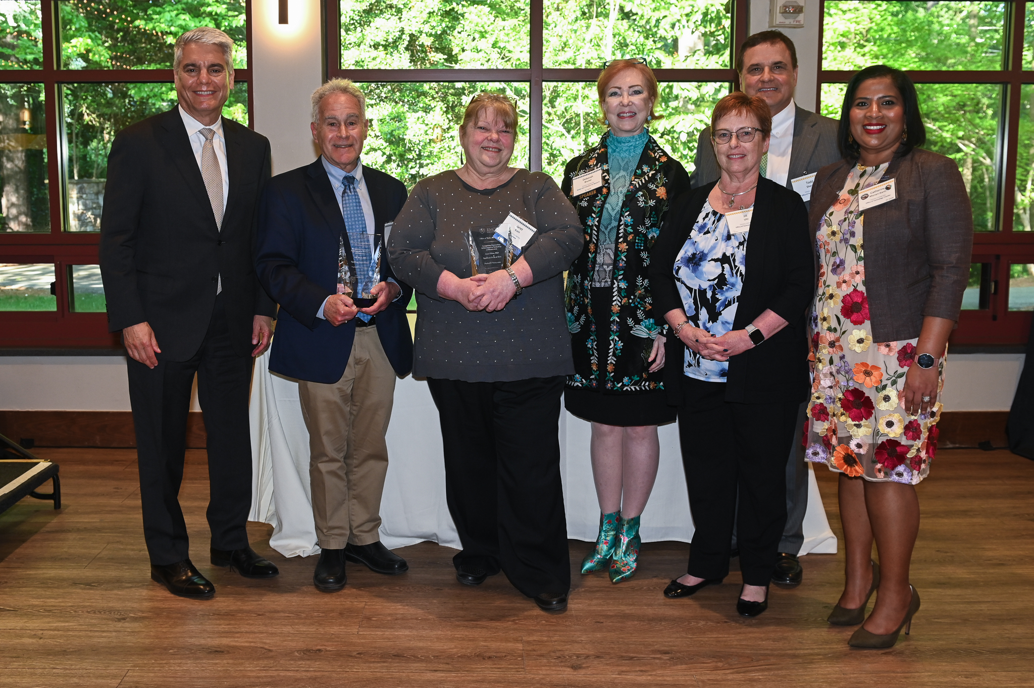Gregory Fenves, President; Raymond Schinazi and Leda Bassit, inventors; Patrick Reynolds, case manager; Deborah Bruner, SVP Research; Todd Sherer, AVP Research; Jill Uhl, Chief IP Officer